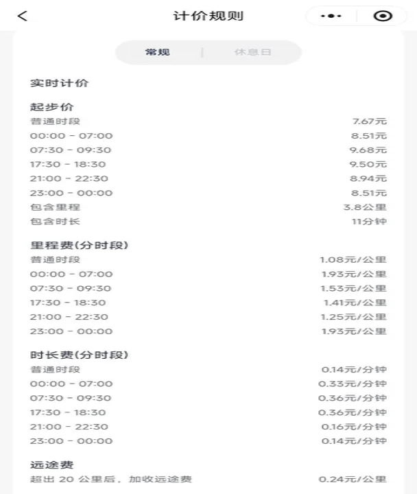 一、运价规则(以快车为例)